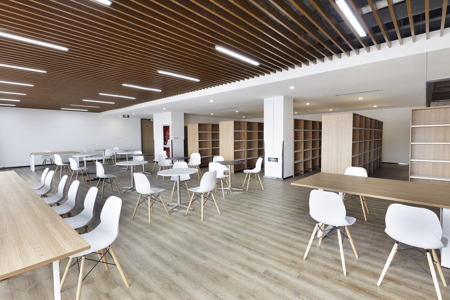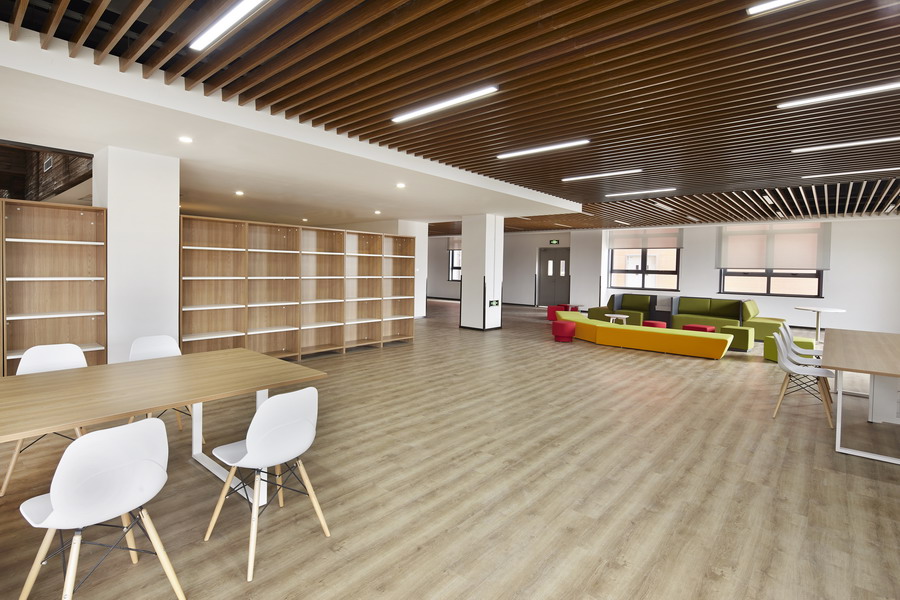 材料和基調(diào)的選擇以淡雅的原木系為主,色彩緩和、給員工心靈的撫慰,達(dá)到舒緩壓力和工作緊張感的作用。